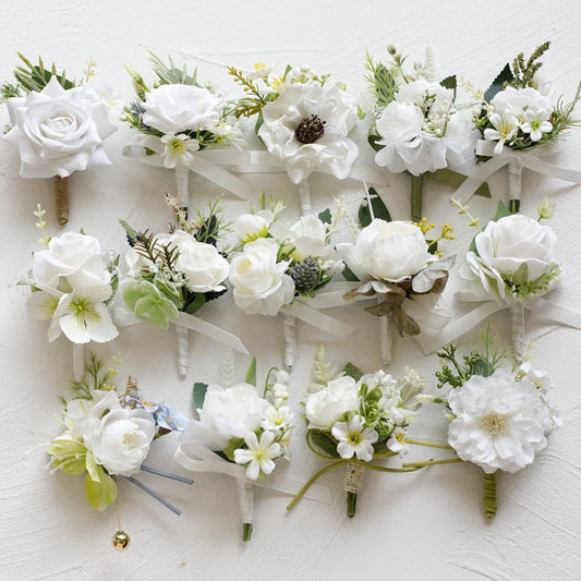 White Rose Corsage, Artificial Flower Corsage, Wedding Ceremony, Anniversary Ball, Formal Dinner Corsage